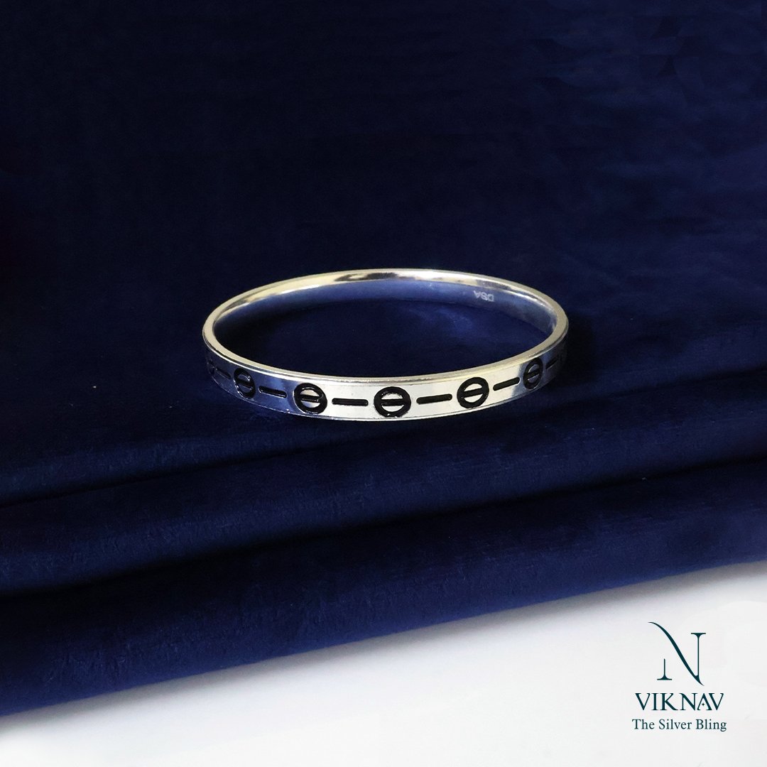 Oxidised Ball Design Kada with Pattern
