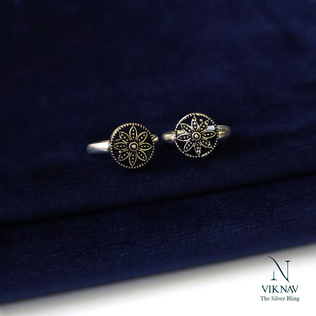 Elevate your style with this stunning 925 Sterling Silver Antique Floral Toe Ring. Crafted from high-quality 92.5% sterling silver, this beautiful toe ring features an intricate floral design with an antique finish. The delicate details and classic look make it a perfect accessory for any outfit.