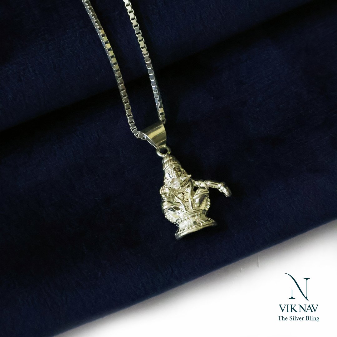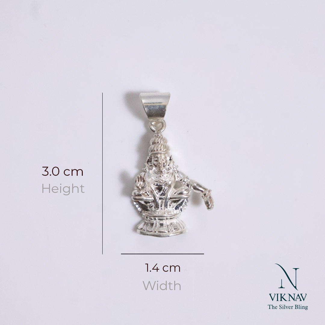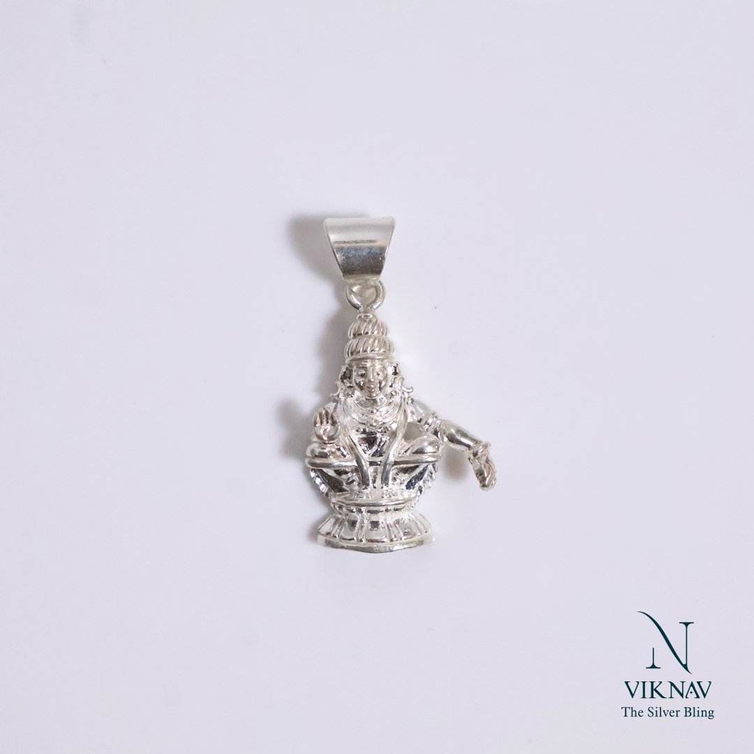 Embrace divine protection and tranquility with the Ayyappa Grace Pendant. Meticulously crafted from high-quality 925 Sterling Silver, this pendant features a stunning representation of Lord Ayyappa seated in his iconic, serene posture. The detailed artistry captures the peaceful and powerful essence of the deity, making it a perfect devotional charm for those undertaking the sacred pilgrimage or seeking spiritual strength in their daily lives. Wear this silver locket as a constant reminder of faith, discipline, and inner peace. It’s an elegant and deeply meaningful addition to any collection.