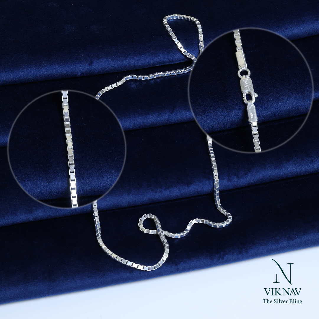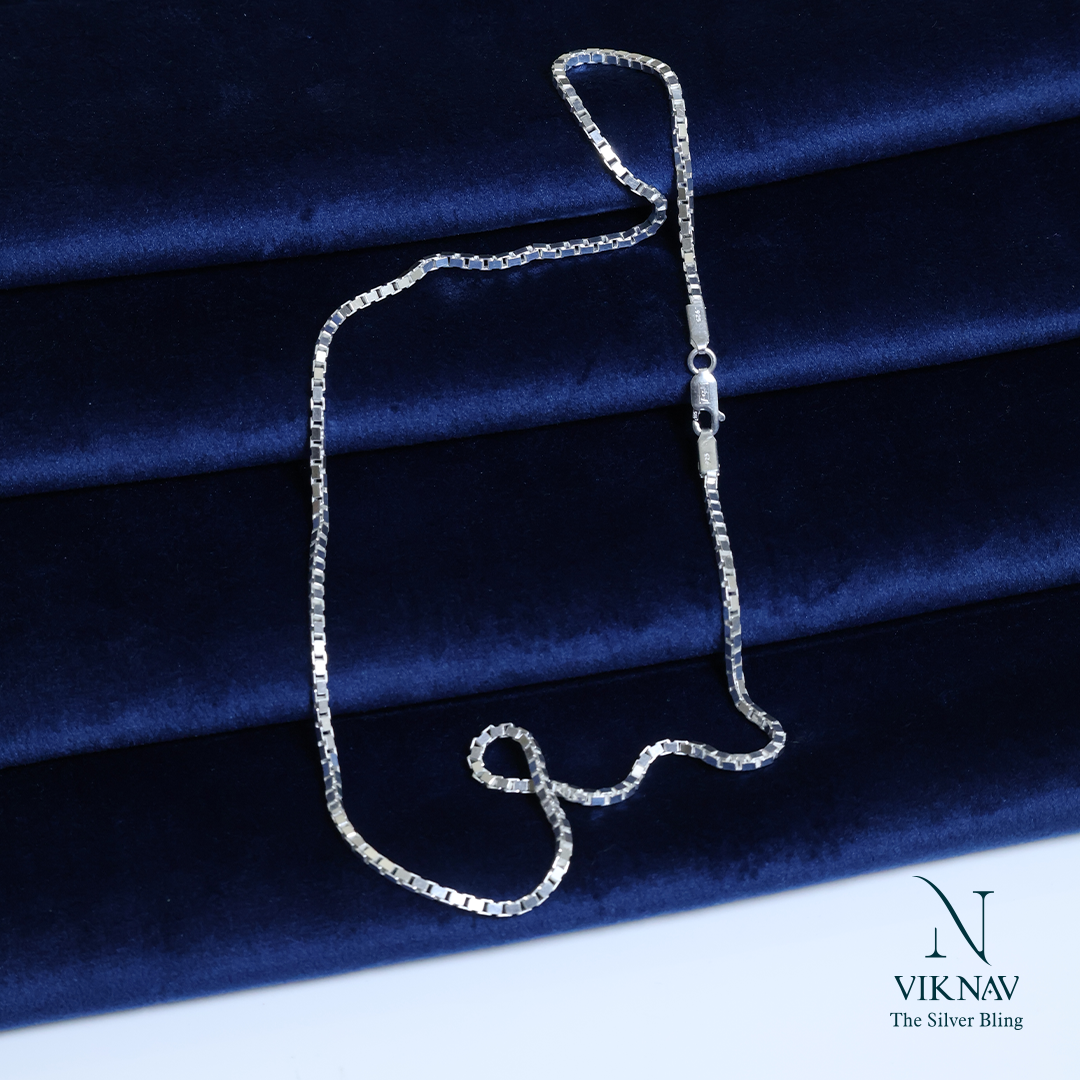 Timeless and versatile, the Classic Box Link Chain is a staple in any jewelry collection. Crafted from premium 925 sterling silver, this chain features finely interlocked square links that offer a smooth, polished finish and a sturdy, masculine appeal. Perfect for everyday wear or pairing with pendants, its minimalist design makes it suitable for both men and women. Whether worn solo for a sleek look or layered with other pieces, this chain delivers enduring style and durability.