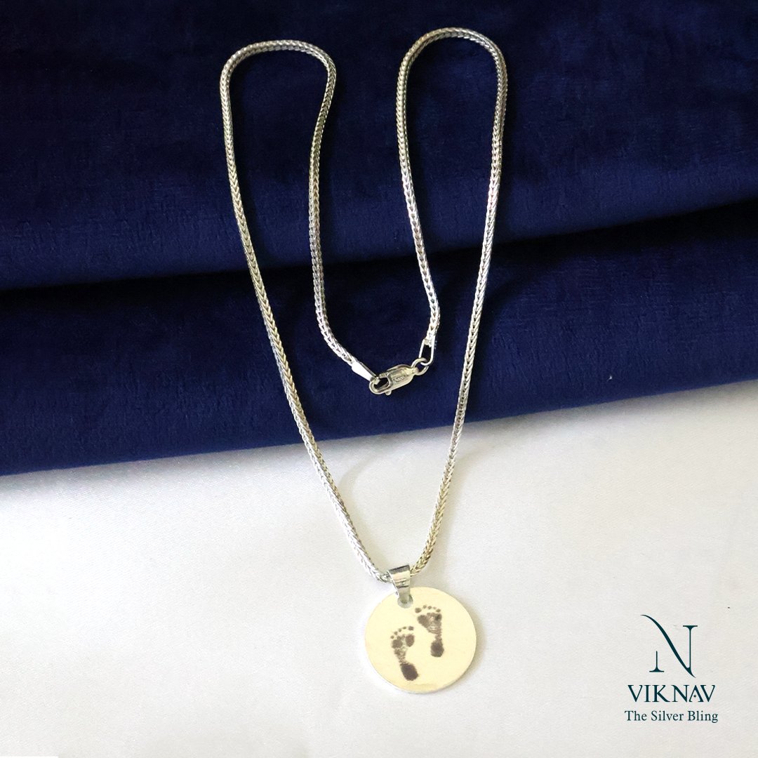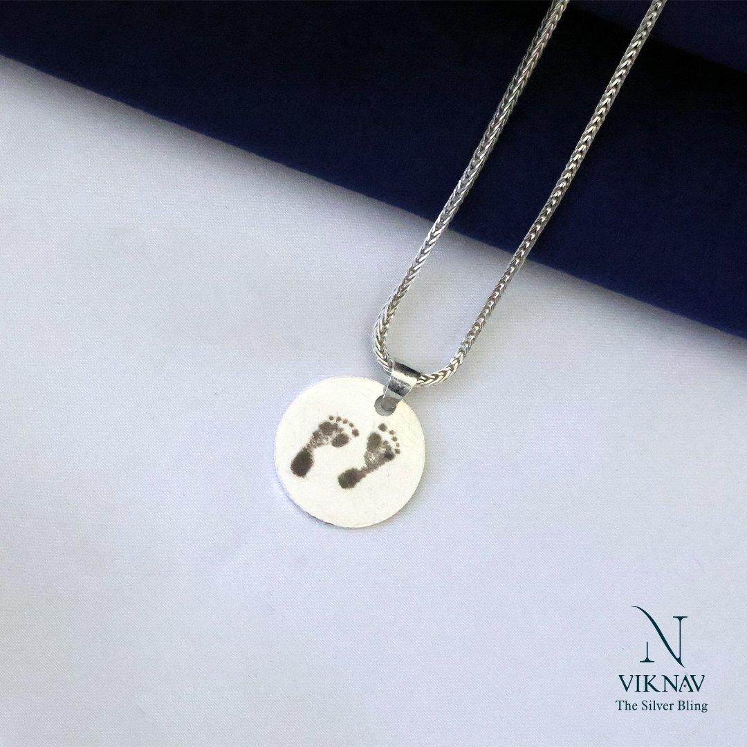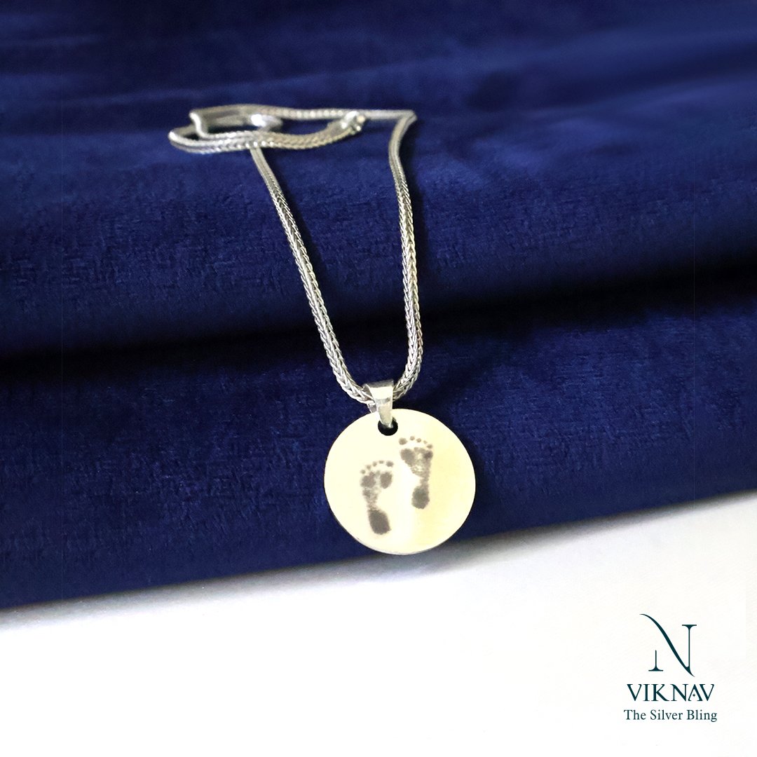Capture life’s most meaningful moments with this personalized fingerprint and footprint pendant chain—a truly one-of-a-kind keepsake crafted just for you. Made from premium 925 sterling silver, this elegant pendant allows you to immortalize the unique fingerprint or footprint of a loved one—be it a newborn’s tiny toes or a cherished family member’s touch. Each piece is meticulously engraved with your submitted print, preserving the fine details and texture for a heartfelt, lifelong memory. Suspended from a durable silver chain, it’s the perfect blend of sentiment and style—ideal for gifting on birthdays, anniversaries, or memorials.