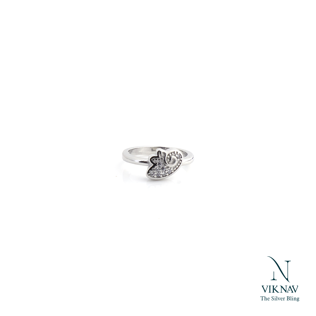 The ring features an enchanting spiral or swirl motif that captures a playful sense of motion