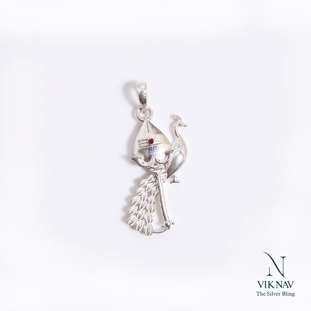 This Pendant features the sacred Vel and the Mayil (peacock), the principal emblems of Lord Murugan