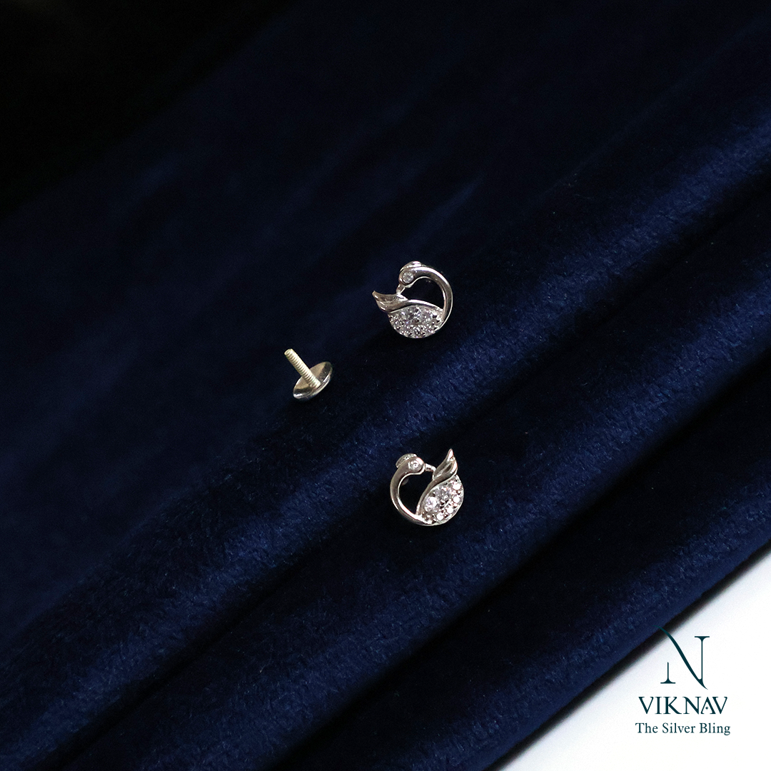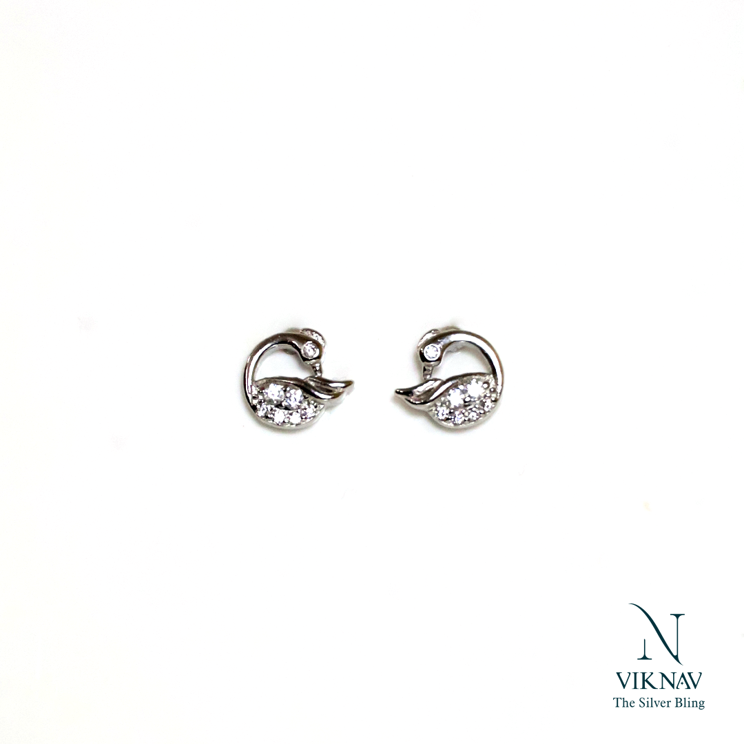 Embody the timeless elegance and serene beauty of nature with these charming Graceful Swan Stud Earrings. Crafted from polished 925 Sterling Silver, each stud is shaped into the iconic silhouette of a swan, capturing its fluid, curved neck and body in a delicate design. The swan's body is fully paved with brilliant white Cubic Zirconia stones, adding a dazzling, diamond-like sparkle that catches the light with every turn. A beautiful symbol of grace, purity, and love, these dainty yet majestic studs are perfect for adding a touch of sophisticated shimmer to your everyday style or completing an elegant evening look.