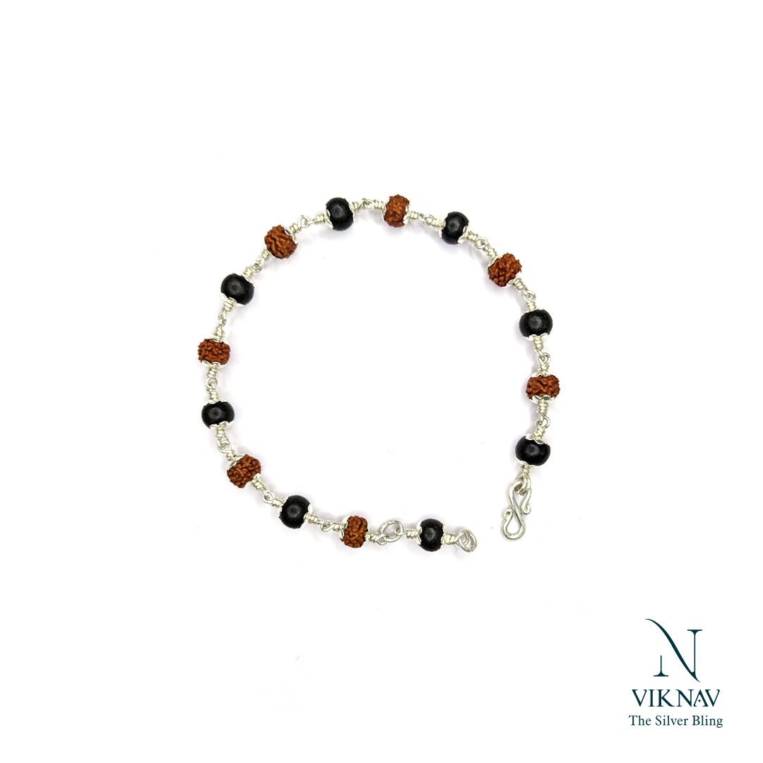 Embrace tradition and spiritual energy with our Handmade Silver Karungali (Ebony Wood) with Rudraksha Bracelet. Expertly crafted by artisans, this bracelet combines the protective powers of Karungali, revered for its grounding and healing qualities, with sacred Rudraksha beads, symbolizing peace, strength, and divine connection. The bracelet is accentuated with pure silver detailing, adding an elegant touch to its spiritual essence. Ideal for daily wear or sacred rituals, it’s more than an accessory—it's a personal talisman that aligns your mind, body, and soul.