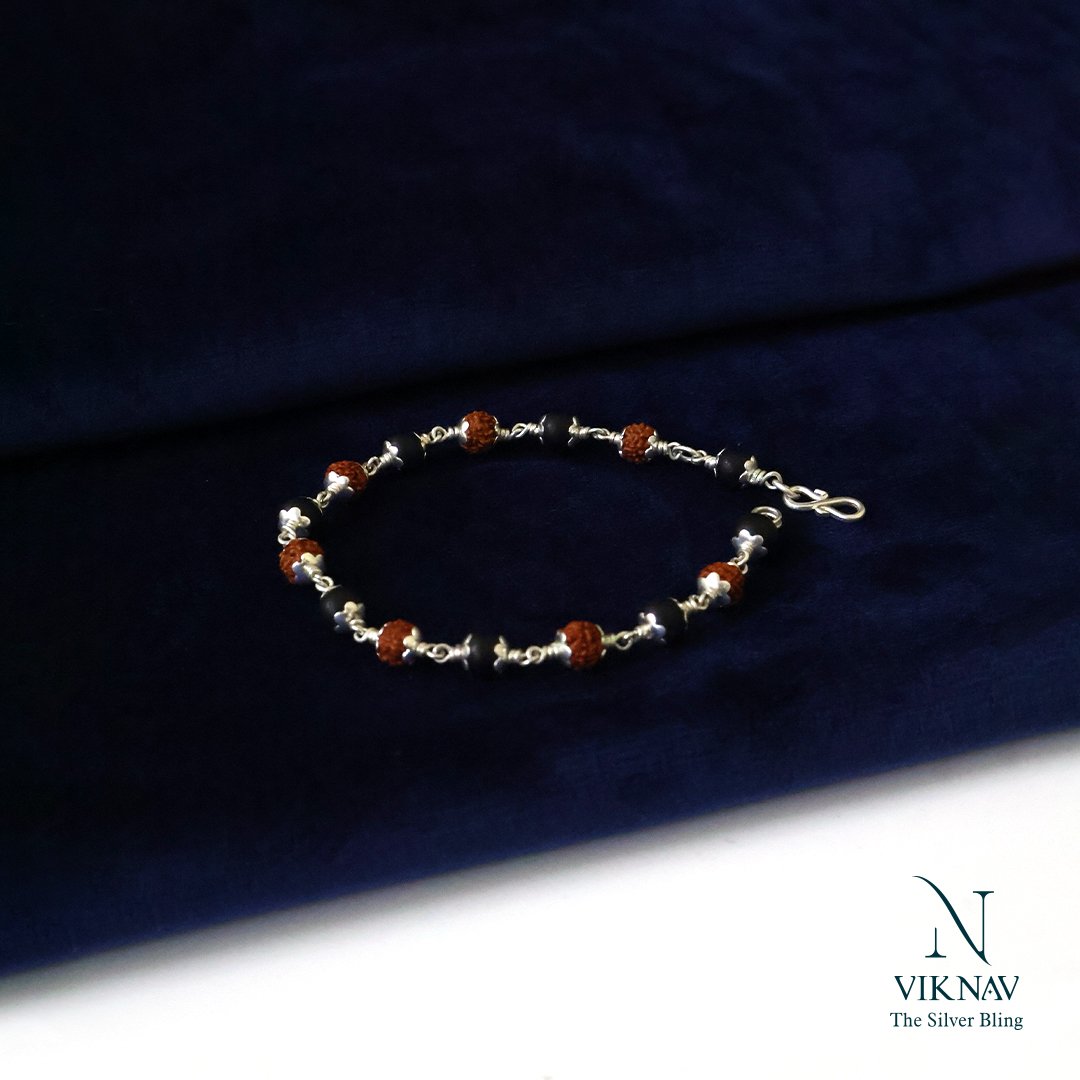 Embrace spiritual elegance with our Customized Handmade Silver Karungali (Ebony) with Rudraksha Bracelet-a powerful blend of tradition, energy, and personalization. This handcrafted bracelet features the protective essence of Karungali wood and the divine vibration of Rudraksha beads, enhanced with elegant silver accents. Tailored to your preferences, you can customize the bead size (ranging from 6mm to 12mm) and choose the bracelet length for a perfect fit. Whether worn for spiritual strength, meditation, or as a meaningful gift, this bracelet is a timeless symbol of inner power and personal devotion.