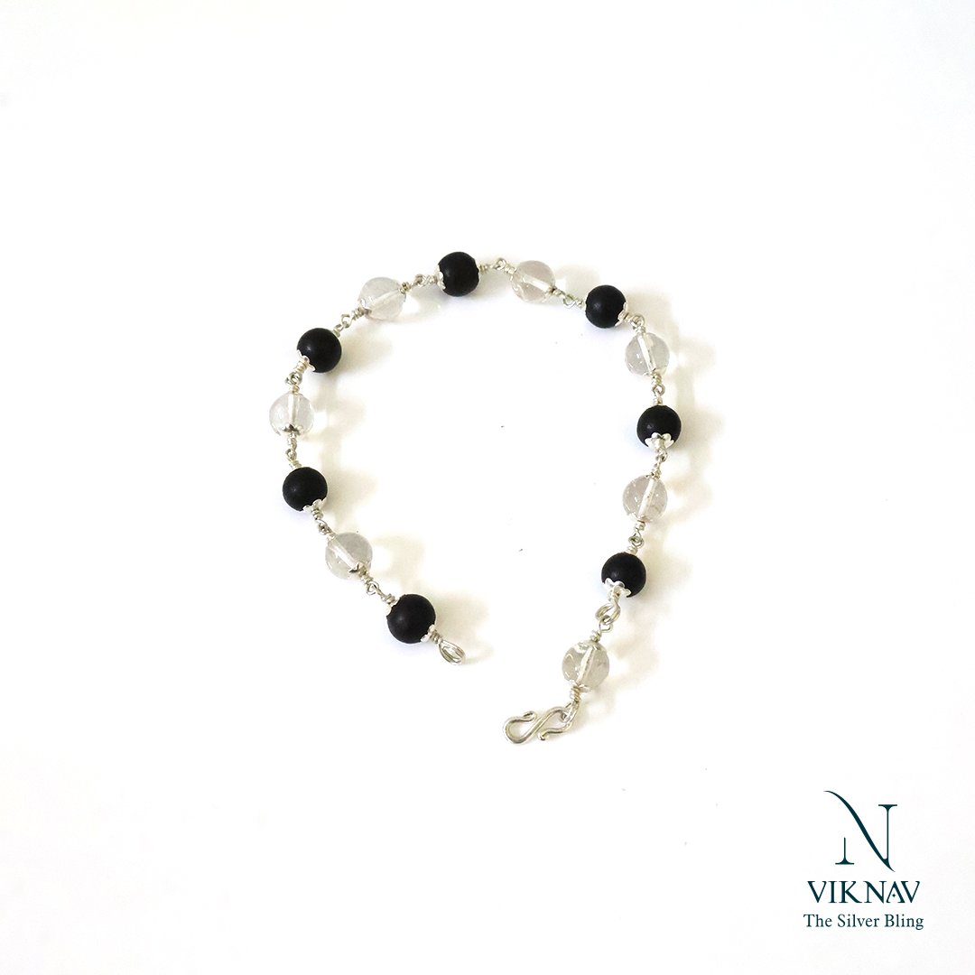 Discover the divine balance of clarity and protection with our Customized Handmade Silver Karungali (Ebony) with Spadigam Bracelet. Thoughtfully handcrafted, this sacred bracelet features Karungali (Ebony) wood-renowned for its grounding and shielding properties-paired with Spadigam (Clear Quartz), a crystal celebrated for its purifying energy and spiritual clarity. Personalize your bracelet with custom bead sizes (6mm to 12mm) and adjustable lengths, tailored to your comfort and spiritual needs. Finished with detailed silver accents, this bracelet is ideal for meditation, energy alignment, or as a meaningful gift rooted in tradition and individuality.