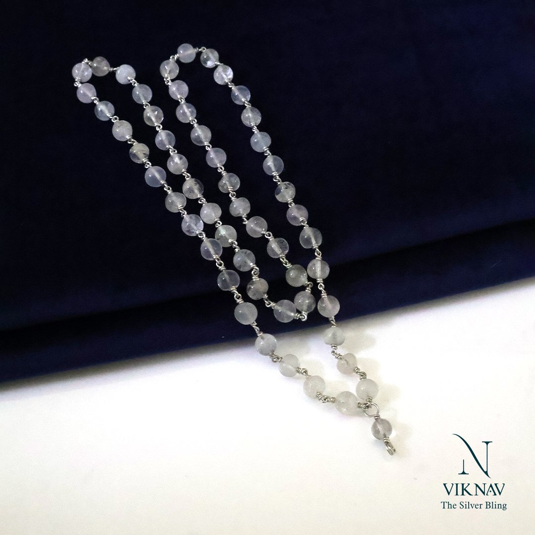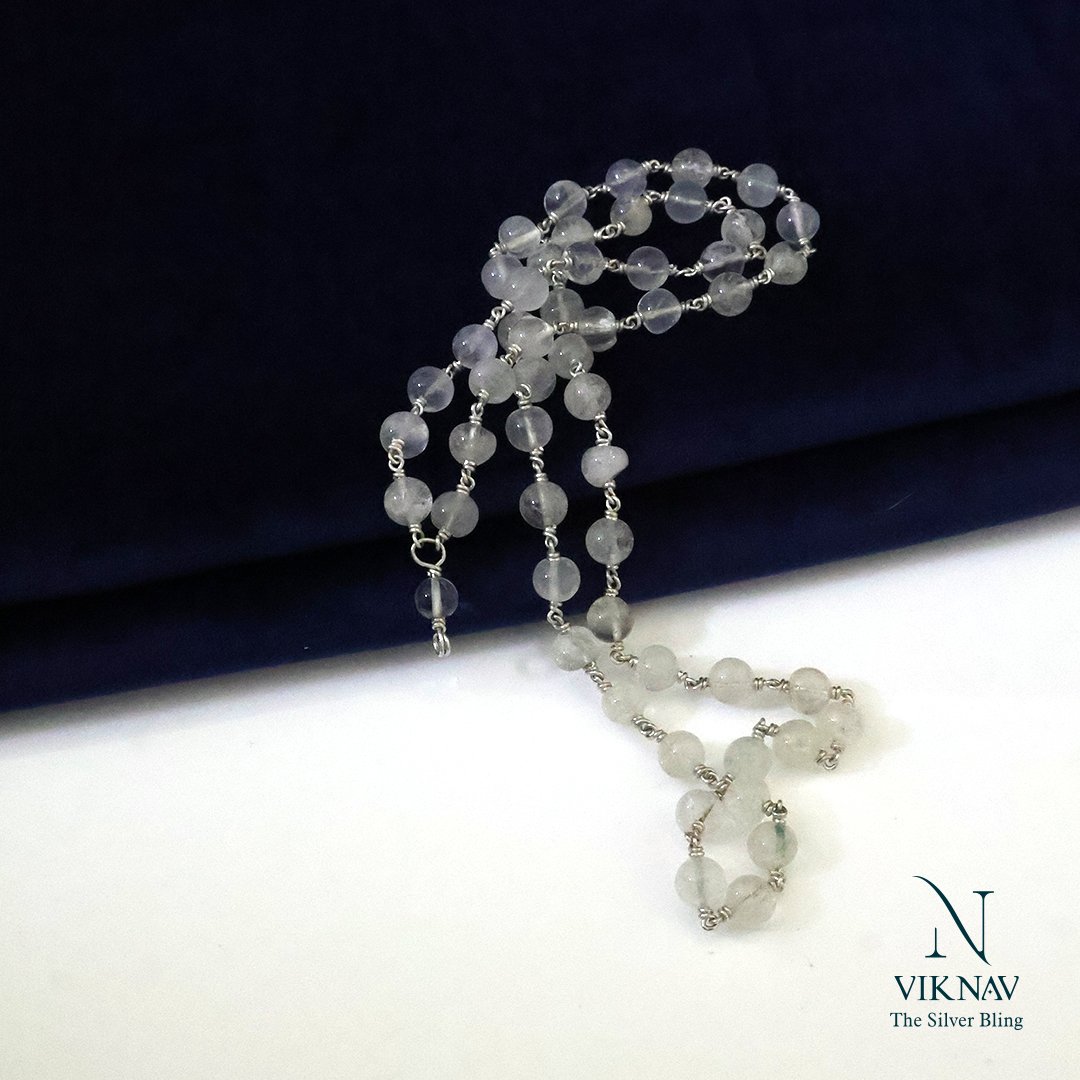 Experience the serene power of spirituality with this Handmade Silver Spadigam Maala, carefully crafted with clear, naturally energised spadigam (crystal quartz) beads. Known for their ability to absorb, store, and radiate positive energy, these transparent beads are traditionally worn for mental clarity, spiritual growth, and inner peace. Paired with pure silver accents, this maala is both a sacred ornament and a symbol of divine purity.