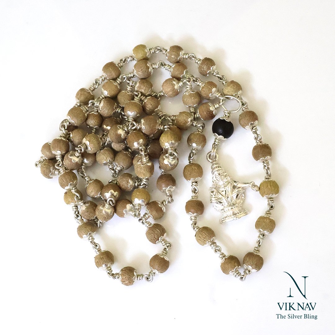 Infused with devotion, rooted in tradition, the Handmade Silver Thulasi Maalai is a gentle echo of sacred heritage. Each silver bead reflects the purity of Thulasi, handcrafted with intention to bring peace, clarity, and divine connection into your everyday life. Gracefully made by skilled artisans, this mala isn't just jewelry — it's a wearable blessing. Designed for the spiritually inclined, it balances beauty and sanctity, making it ideal for prayer, gifting, or simply carrying a touch of the divine close to your heart.