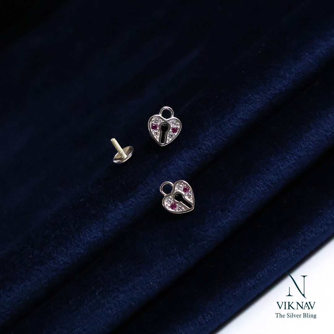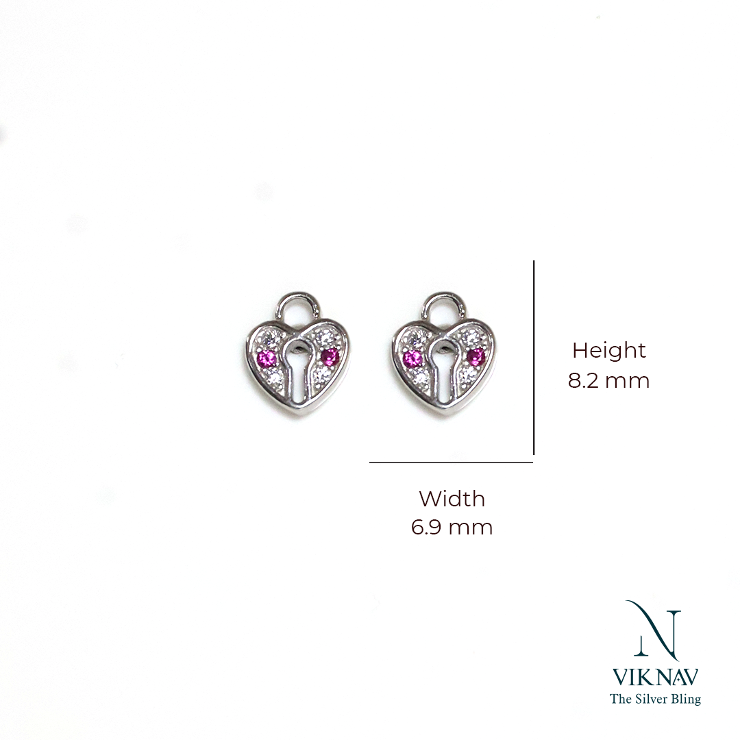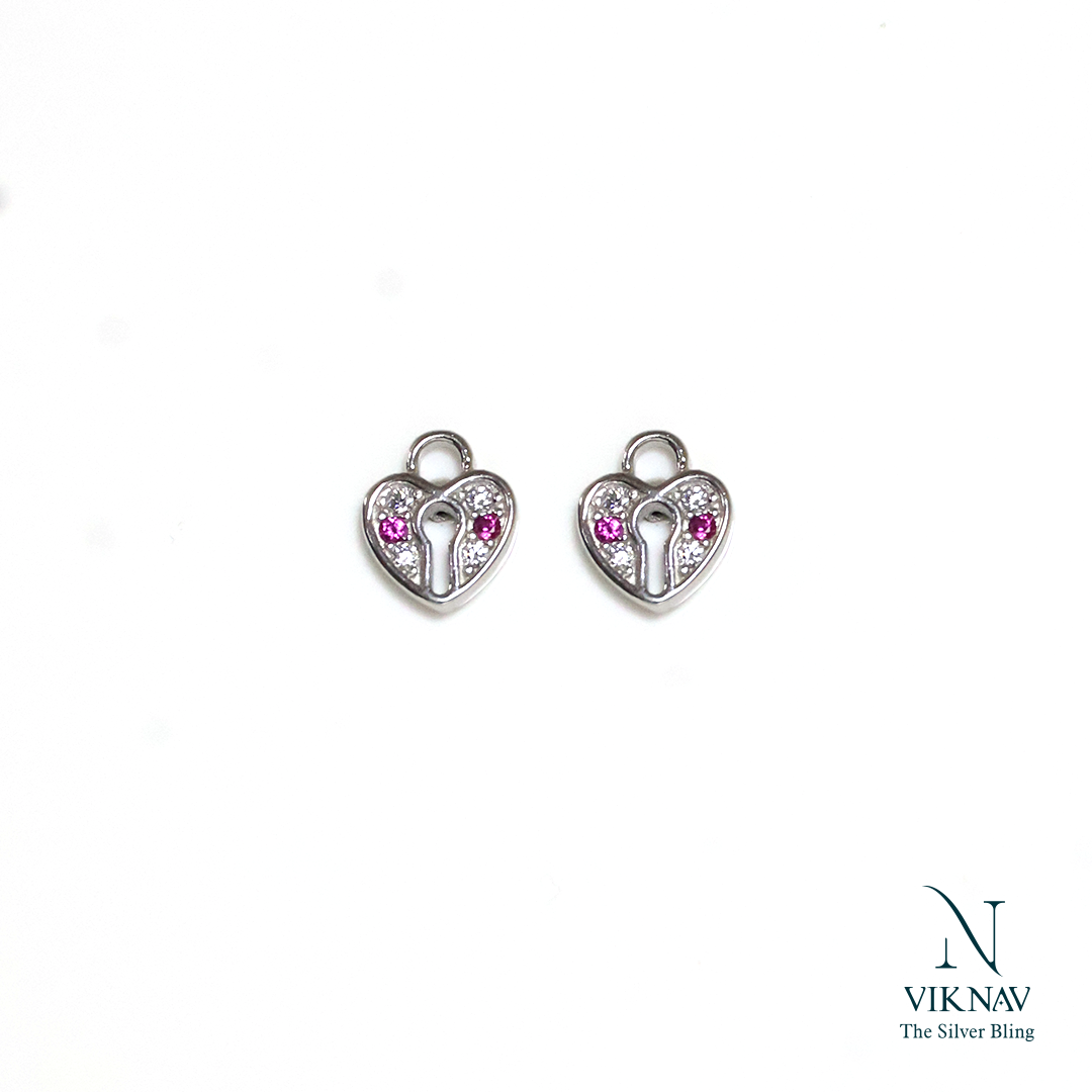 Unlock a symbol of eternal devotion with these exquisitely crafted Love Lock Stud Earrings. Made from genuine 925 Sterling Silver, these stud features a delicate heart-shaped lock design, embodying unbreakable love and commitment. The face of the lock is brilliantly detailed with a combination of sparkling stones: a central cluster of vibrant pink gems is encircled by a dazzling halo of clear white stones, creating a mesmerizing contrast against the cool luster of the silver.