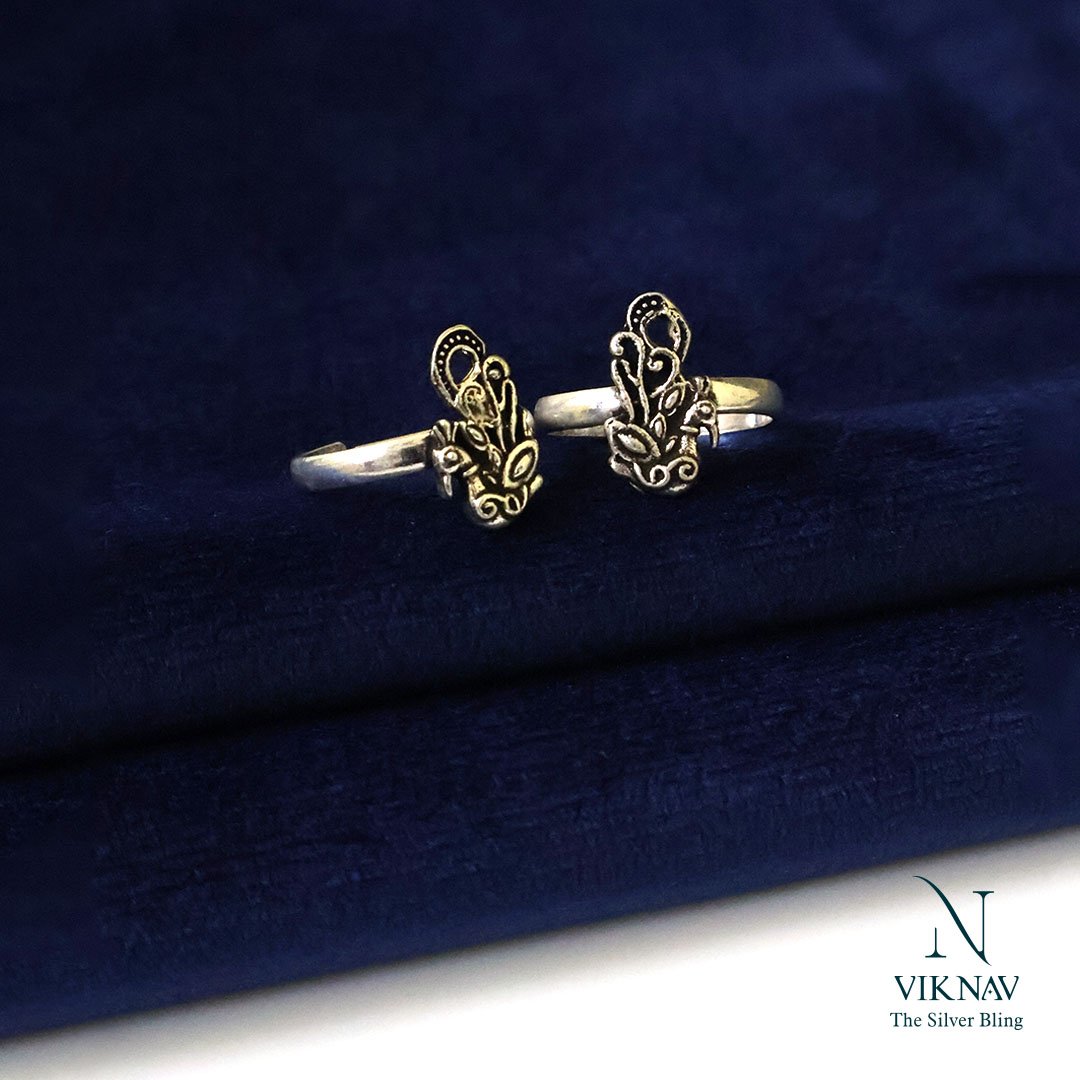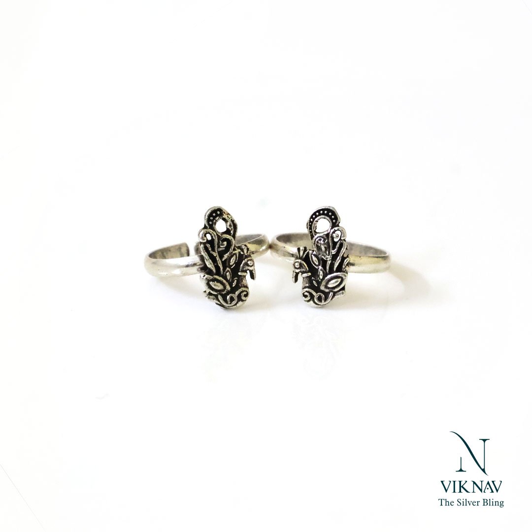 Elevate your style with this stunning 925 Sterling Silver Oxidised Peacock Toe Ring. Crafted from high-quality 92.5% sterling silver, this beautiful toe ring features an intricate peacock design with an oxidised finish, giving it a unique and rustic look. The detailed craftsmanship and classic design make it a perfect accessory for any outfit.