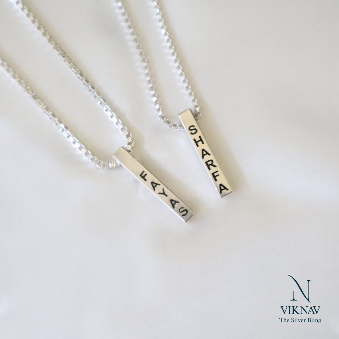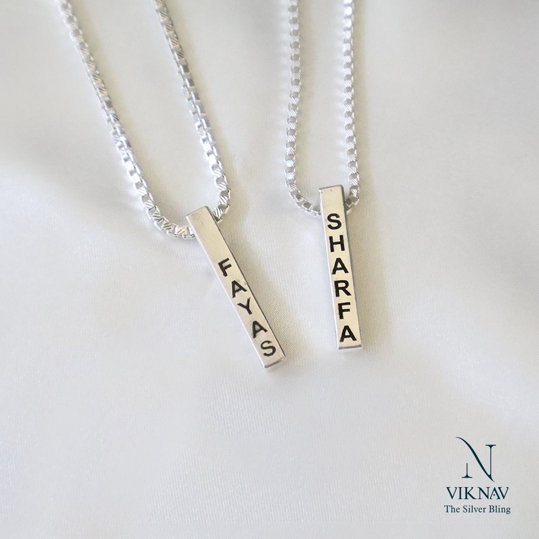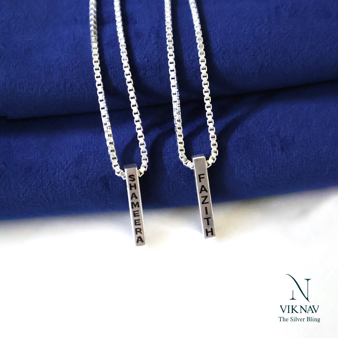 Make your mark with timeless style in this Personalized 3D Engraved Name Pendant Chain—a bold yet elegant statement piece designed just for you. Crafted from high-quality pure silver this pendant features a sleek 3D bar design with your custom name, initials, or meaningful word engraved on one or more sides. Whether worn solo or layered, the vertical bar pendant adds a personal touch to any outfit. It’s the perfect gift for birthdays, anniversaries, couples, or to celebrate your own unique identity.