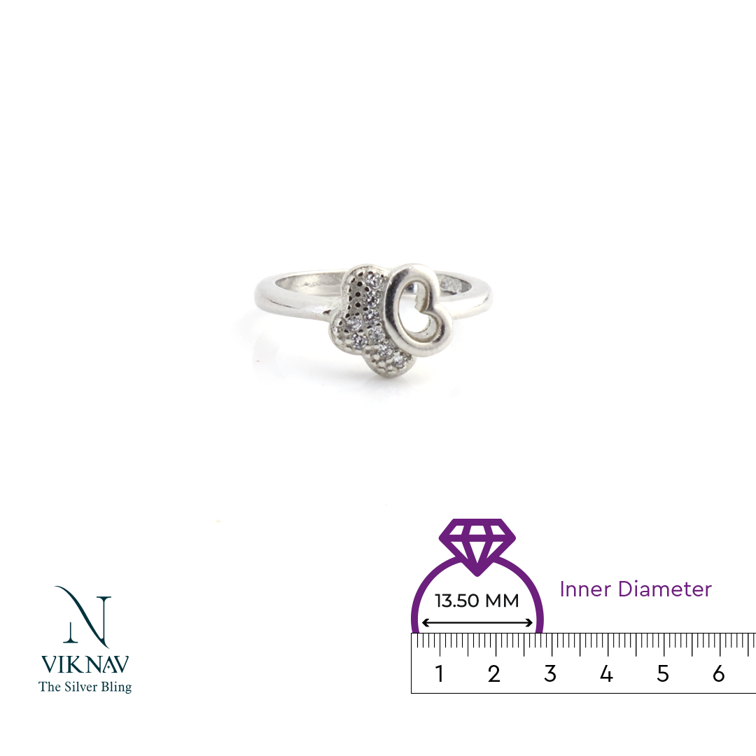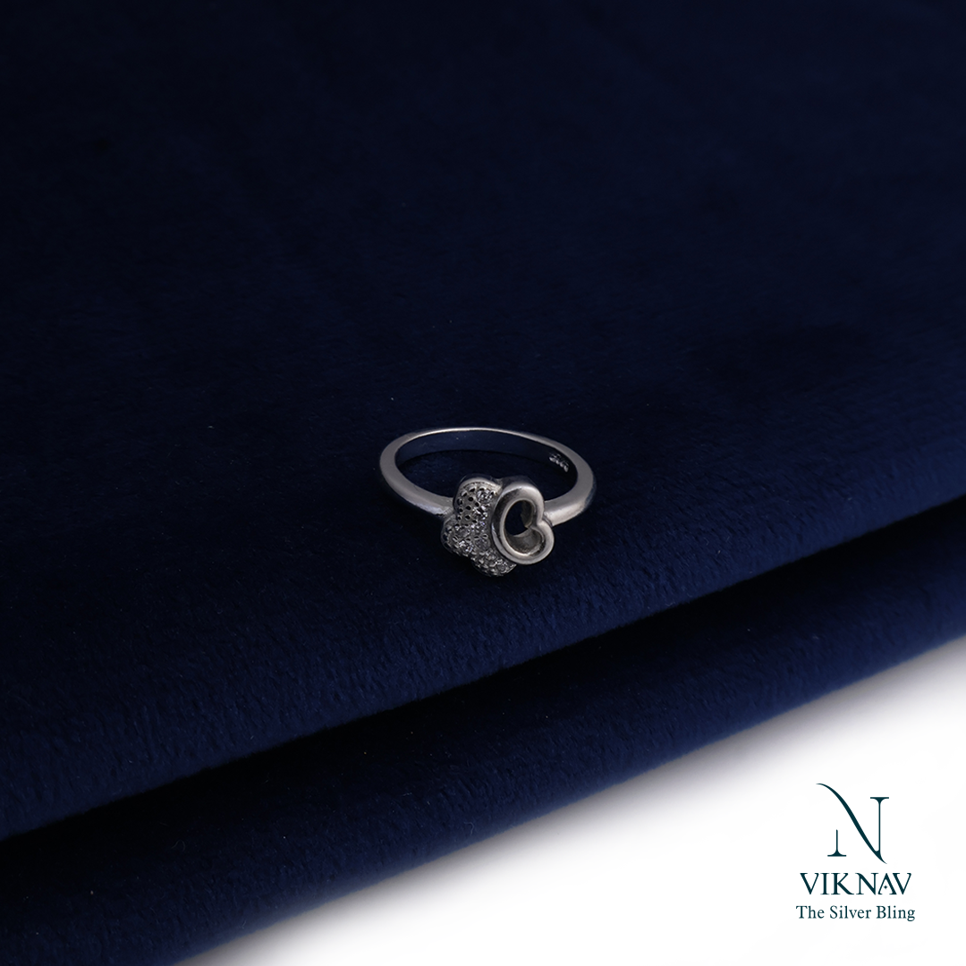 This ring is a beautiful blend of love and sparkle, crafted from pure 925 Sterling Silver. The dainty design features a shimmering, cubic zirconia-studded base, shaped like a flower or clover, which elegantly cradles a delicate open heart. It’s a comfortable and charming piece, perfect for adding a touch of sweet glamour to kids look.