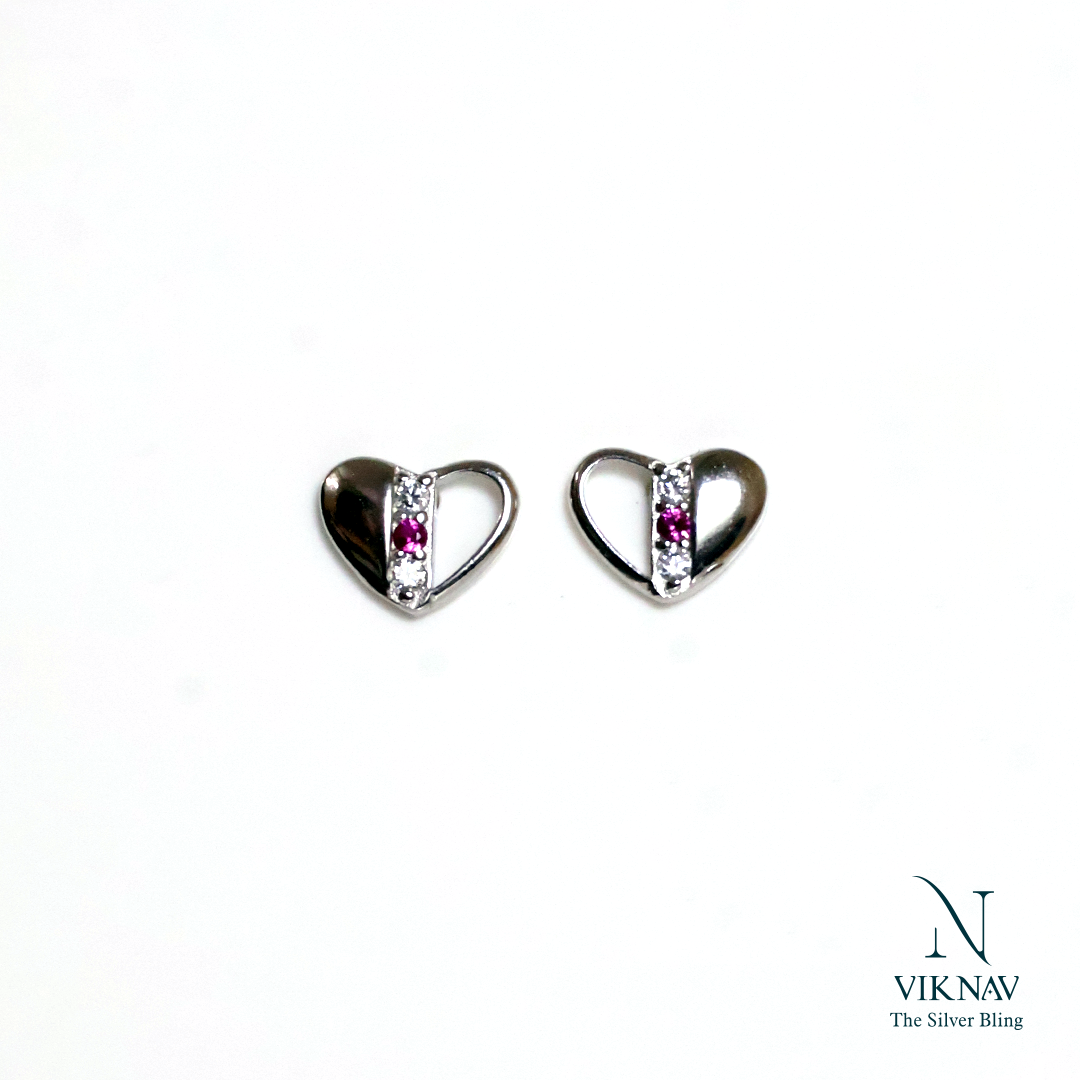 Celebrate love and elegance with our Ribbon Heart Studs. This unique design highlights a delicate row of sparkling gemstones-a blend of clear white and striking pink accents-adding a vibrant flash of color. Perfect for gifting or treating yourself, these studs are a beautiful expression of affection and style, secured comfortably with a South Screw back.