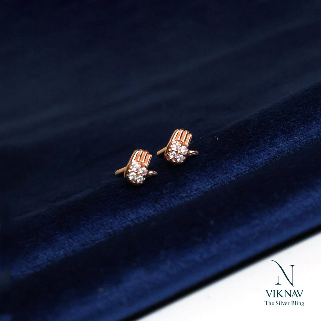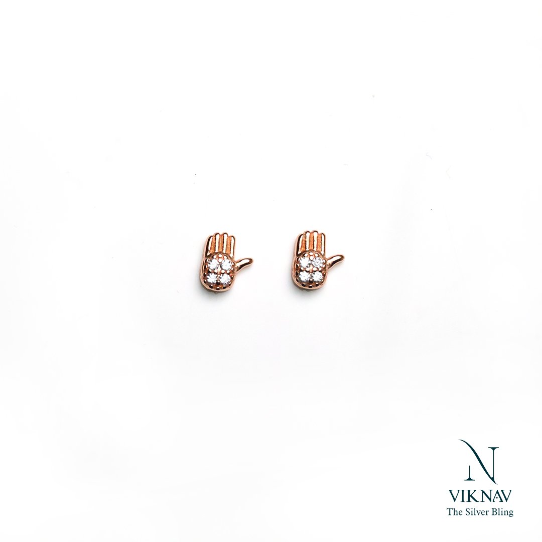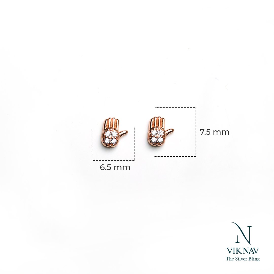 Add a touch of meaningful elegance to your collection with these Handy Sparkle Studs. Crafted from premium 925 sterling silver and finished with a warm rose gold plating, each stud features a delicate hand-shaped design adorned with shimmering white stones. These petite earrings combine charm and subtle sparkle, perfect for special occasions.