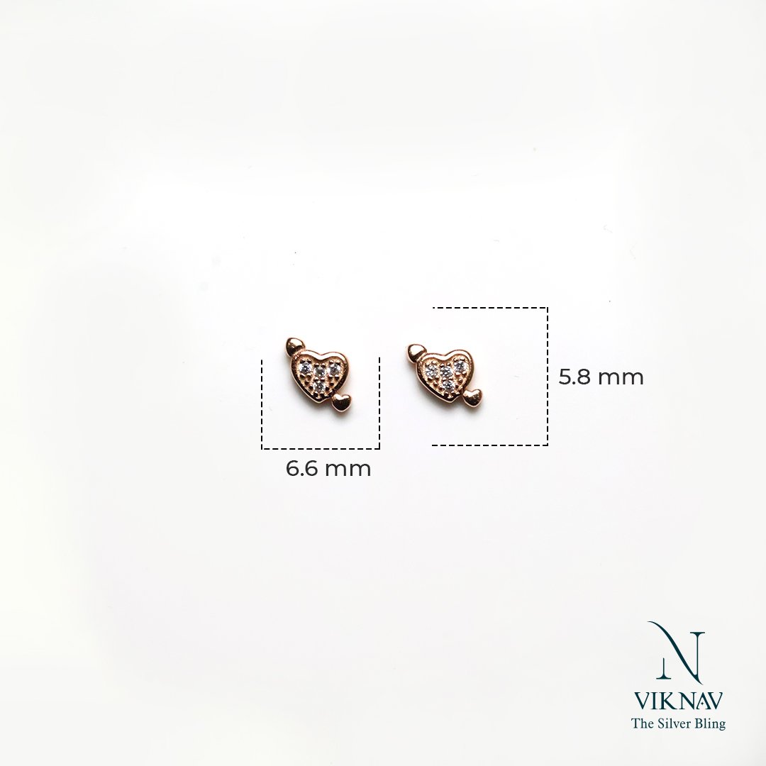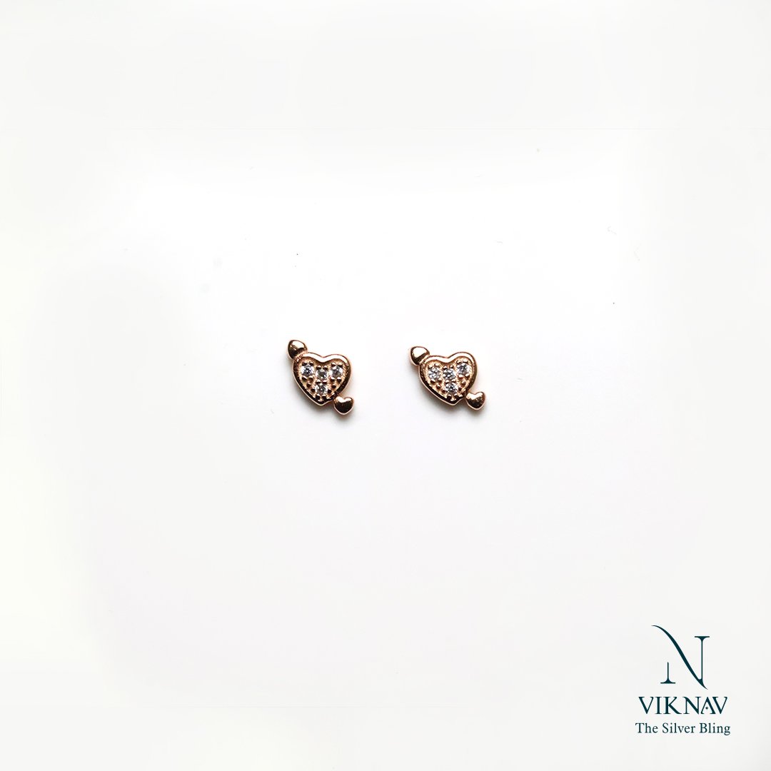 Celebrate the magic of love with these charming Tiny Love Strike Studs. Crafted from high-quality 925 sterling silver and finished with a warm rose gold plating, each stud features a delicate heart pierced by an arrow design, adorned with shimmering white stones for a subtle sparkle. Perfectly petite and lightweight, these earrings add a sweet and stylish touch to your everyday look or special occasions.