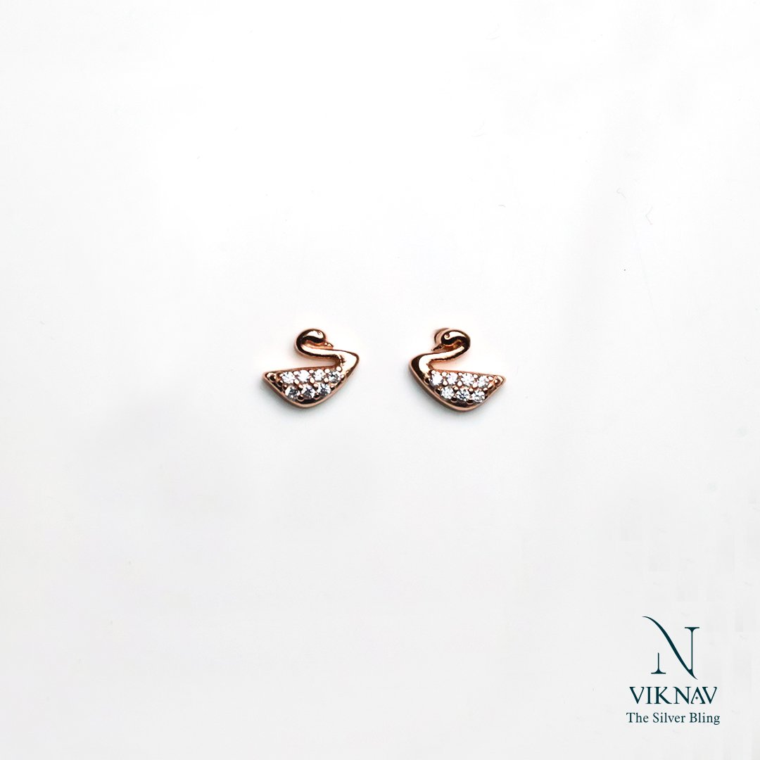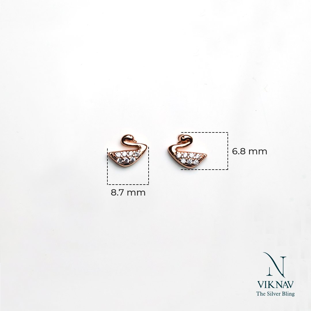 Grace and sparkle come together in these exquisite Twinkle Swan Studs. Crafted from high-quality 925 sterling silver and finished with a radiant rose gold plating, each stud showcases a delicate swan design adorned with shimmering white stones. These petite earrings offer a timeless elegance and subtle sparkle, perfect for adding a refined touch to your everyday look or dressing up for special occasions.