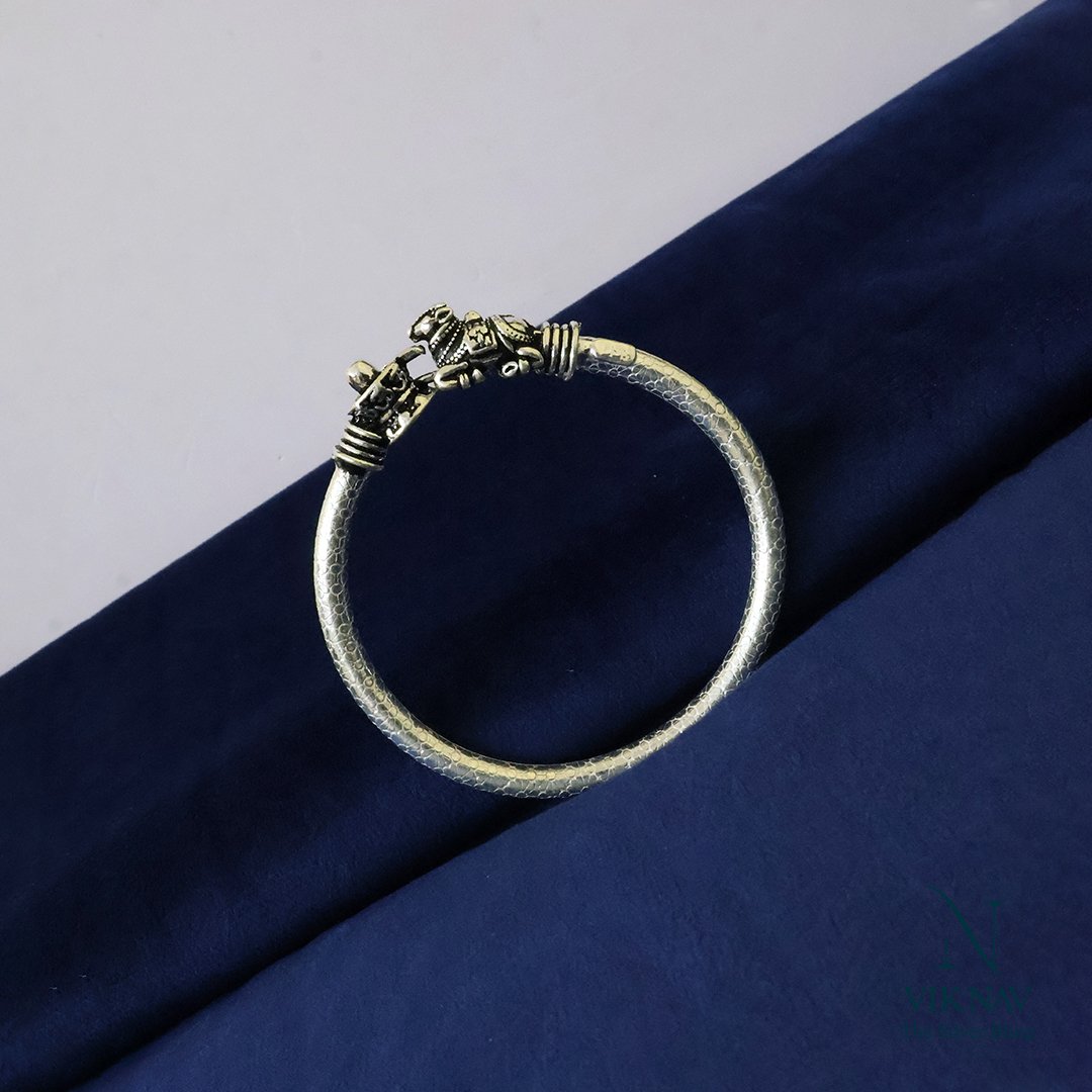 Oxidised texture gives the kada a vintage, temple-style aesthetic