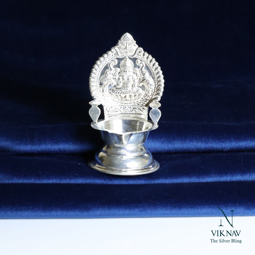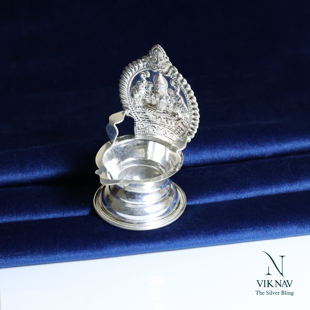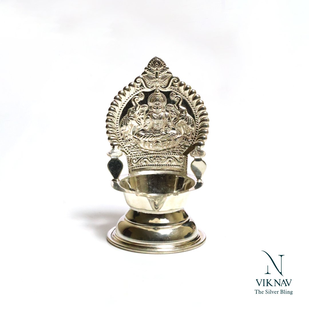 The Silver Kamatchi Vilakku is a sacred and traditional lamp revered in Hindu households and temples, symbolizing Goddess Kamakshi—an incarnation of Goddess Parvati, the embodiment of love, wealth, and compassion. Crafted in pure silver, this exquisite vilakku is not only a spiritual centerpiece but also a cherished heirloom, believed to attract positive energy, prosperity, and divine blessings when lit with devotion. Lighting the Silver Kamatchi Vilakku is not just a ritual—it’s an offering of light to the Divine Mother, inviting harmony, health, and abundance into your life.