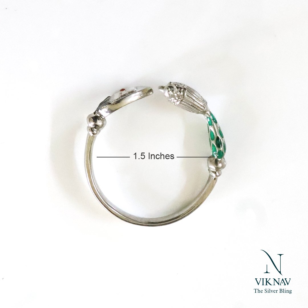 Celebrate tradition and elegance with this beautiful Kada for Kids, crafted in premium 925 sterling silver. This symbolic piece features a finely detailed Vel (spear) motif alongside a graceful peacock design, representing strength, protection, and beauty ideal for young wearers with cultural roots and modern style. Designed with smooth, rounded edges and a lightweight feel, this kada offers both comfort and safety for children. Gift your little one a piece of heritage with this Kada, a timeless treasure crafted with meaning and love.